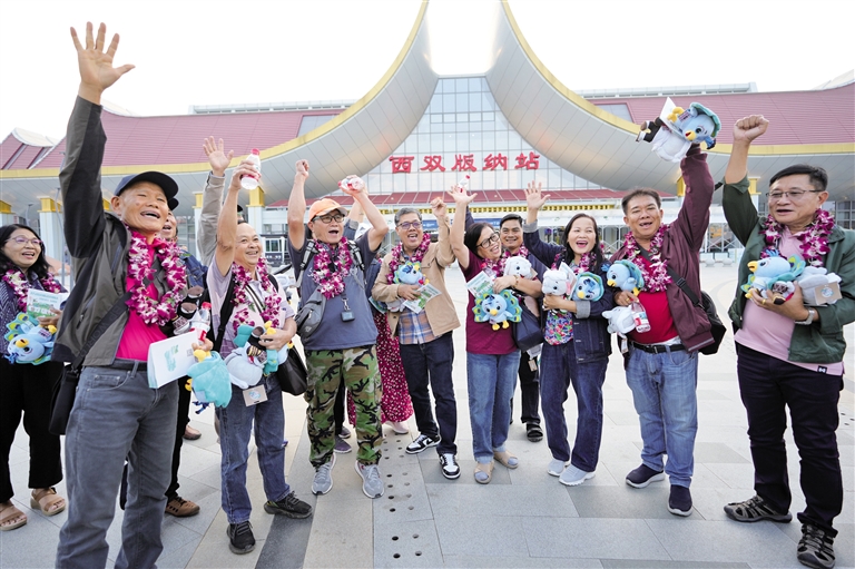 这是东盟国家旅游团入境云南省西双版纳傣族自治州免签政策实施后,抵达的首个旅游团。在旅行社的精心安排下,游客们既可领略西双版纳的自然风光,还能体验当地美食和民族风情。