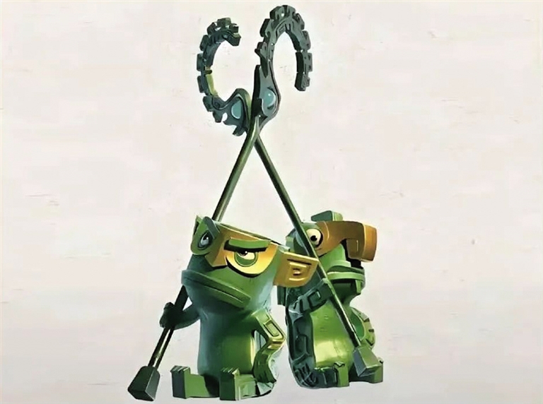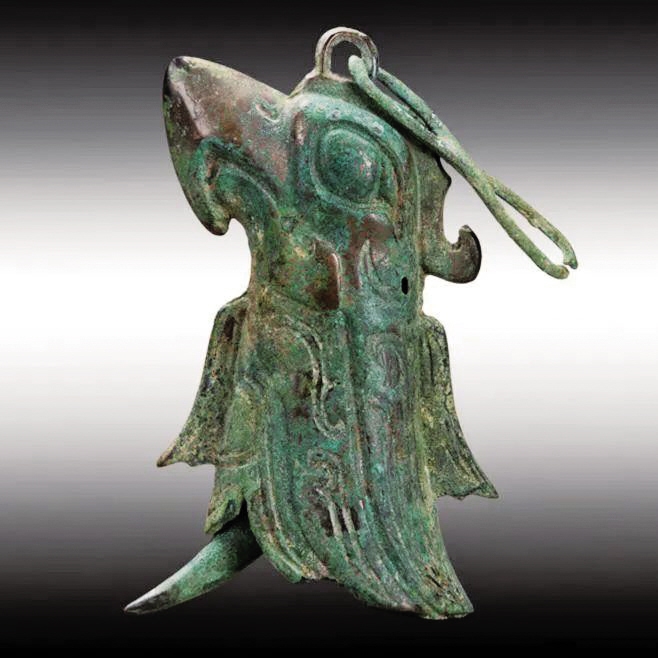 卷鼻结界兽的形象则综合了青铜大面具和青铜鹰形铃等多种元素,最明显的表现在于它卷卷的鼻子,与青铜鹰形铃的嘴部造型极为相似。