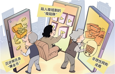 记者发现,在短视频、直播、微短剧等领域,一些营销手段和骗局也开始“适老化”,加上算法机制精准捕获,让辨别能力不足的老年人容易形成行为依赖。