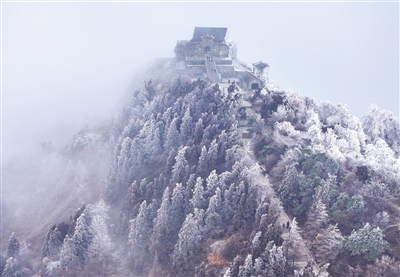 这是2月24日在湖南省衡阳市南岳衡山风景区拍摄的雪景。