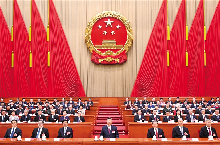 习近平、李强、王沪宁、蔡奇、丁薛祥、李希、韩正和大会主席团成员在主席台就座。