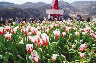 3月22日在淄博市博山区红叶柿岩景区拍摄的郁金香。近日,山东省淄博市博山区红叶柿岩景区的郁金香陆续盛开,吸引游客前来赏花踏春。摄影/新华社记者 徐速绘
