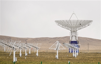 在内蒙古自治区锡林郭勒盟正镶白旗明安图镇附近的草原上,坐落着国家天文台明安图观测基地。基地内安装了100面射电频谱日像仪,子午工程二期大型监测设备之行星际闪烁监测望远镜也坐落于此。图为3月24日在国家天文台明安图观测基地拍摄的射电频谱日像仪天线。摄影/新华社记者 彭 源