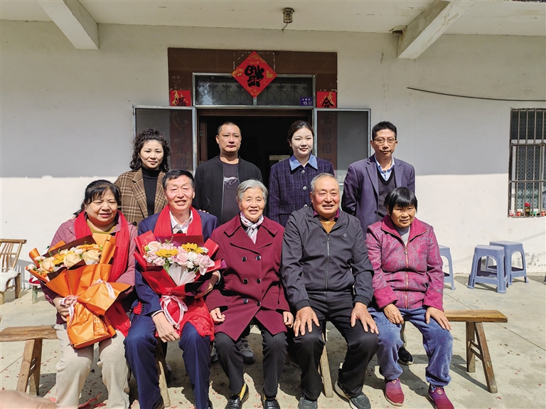 4月2日8时,车队从江阴市出发,近两小时后到达江苏省溧阳市上兴镇水西村。在这里,刘建军年迈的哥哥、姐姐等亲人早已打扫好老房子,焦急地等待着。车队缓缓驶入村里,周家老宅门口鞭炮声震天。84岁的周菊仙、75岁的周全根与阔别65年的弟弟抱头痛哭。