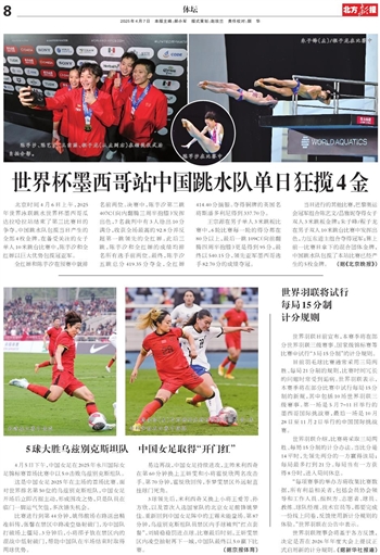当日进行的其他比赛,巴黎奥运会冠军组合陈艺文/昌雅妮夺得女子双人3米跳板金牌;朱子峰/程子龙在男子双人10米跳台比赛中发挥出色,力压东道主组合夺得冠军;算上前一比赛日拿下的混合团体金牌,中国跳水队包揽了本站比赛已经产生的5枚金牌。(据《北京晚报》)