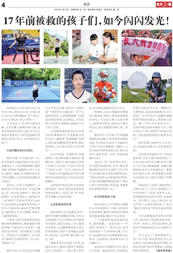 17年过去了,岁月抚平满目疮痍,这里有撕心裂肺的痛与殇,也有永志难忘的爱和力量,汶川已从废墟中重新站立。那些在地震中获救的少年都已长大,如今他们怎么样了?