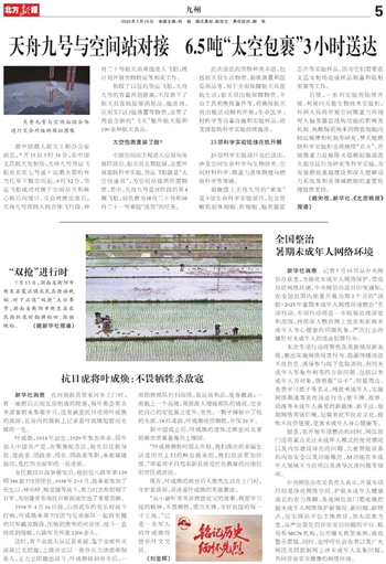 天舟九号与空间站对接 6.5吨“太空包裹”3小时送达