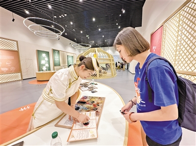 在文创区内,极具内蒙古特色的文创产品成为焦点。中蒙青年穿梭于创意好物间,挑选心仪的冰箱贴、书签、工艺品等,将文化记忆“打包”带走。
