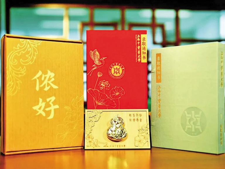 录取通知书的礼盒复刻“六合函套”,苍莨色函套如竹初生的青翠,生机勃勃又富有自然气息。上海中医药大学寄语新生:“六合函套已开,上海的风裹着药香,正轻叩你的门扉。未来的大医!此刻起,这卷东方故事由你执笔。”