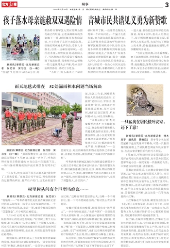 孩子落水母亲施救双双遇险情 青城市民共谱见义勇为新赞歌