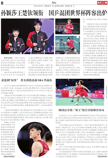 2025年混合团体世界杯将于11月30日至12月7日在成都举行。国乒参赛阵容为:王楚钦、林诗栋、梁靖崑、徐瑛彬、孙颖莎、王曼昱、蒯曼、王艺迪。