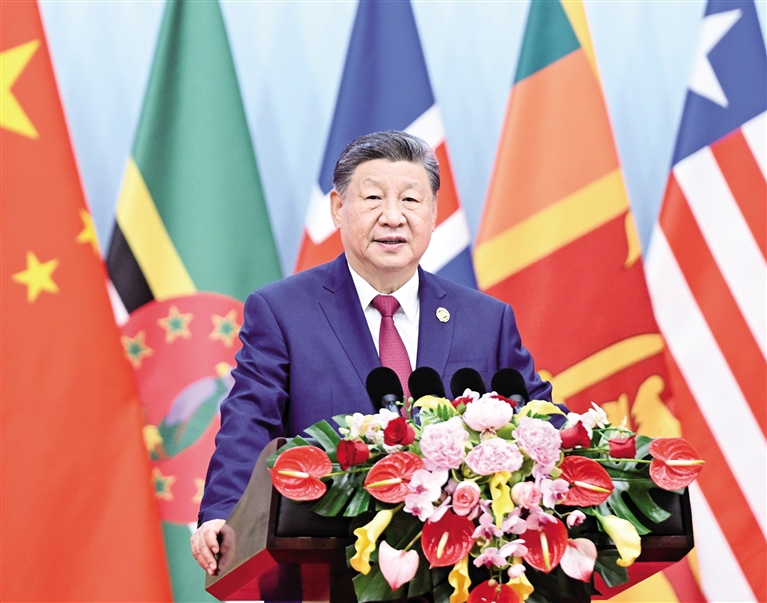 习近平指出,中国坚持将妇女事业融入中国式现代化宏阔实践,妇女事业取得历史性成就、发生历史性变革,中国妇女在经济社会发展中真正发挥着“半边天”作用。中国积极以自身发展为全球妇女事业提供机遇和保障,推动国际妇女交流合作。未来5年,中方将再向联合国妇女署捐款1000万美元;提供1亿美元全球发展和南南合作基金额度,同国际组织合作实施促进妇女和女童发展合作项目;在民生发展领域援助1000个“小而美”项目;邀请5万名妇女来华交流研修;设立“全球妇女能力建设中心”,合作培养更多女性杰出人才。