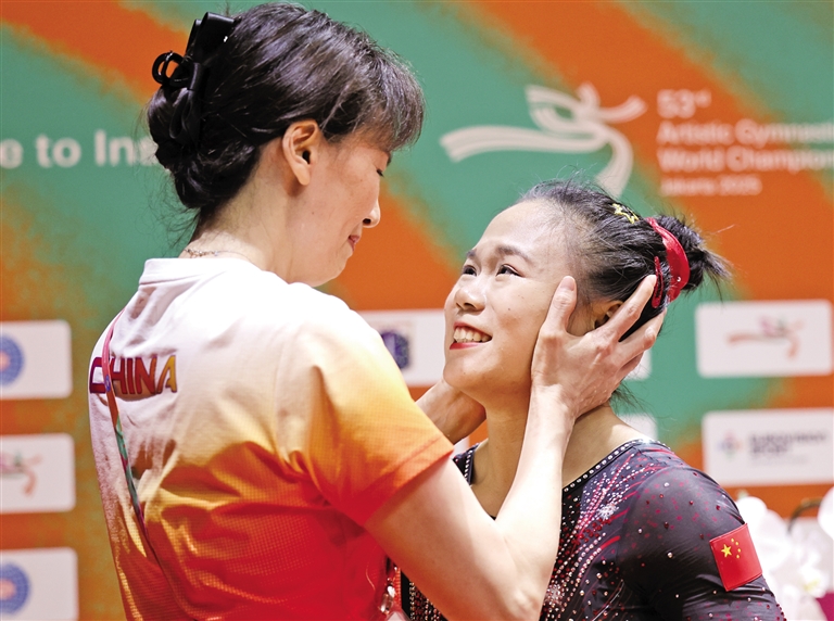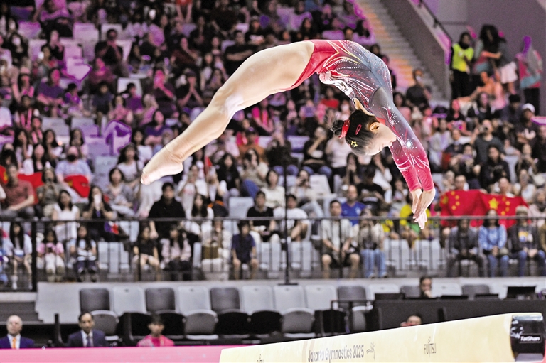 当日单项决赛中,张清颖继女子全能首登领奖台后,又凭借绝对优势在女子平衡木项目上收获个人首枚世锦赛金牌。奥运冠军邹敬园再夺男子双杠冠军,这也是继2017年、2018年和2022年之后,他斩获的第四枚世锦赛双杠金牌。