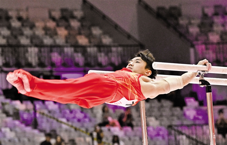 奥运冠军邹敬园在男子双杠资格赛中曾拿到本届世锦赛开赛后的单项最高分15.466分。当天的双杠决赛,邹敬园6.0分的难度动作依然拥有绝对统治力,最终收获15.300分,稳坐第一。他的成绩领先亚军、日本选手角皆友晴0.800分。