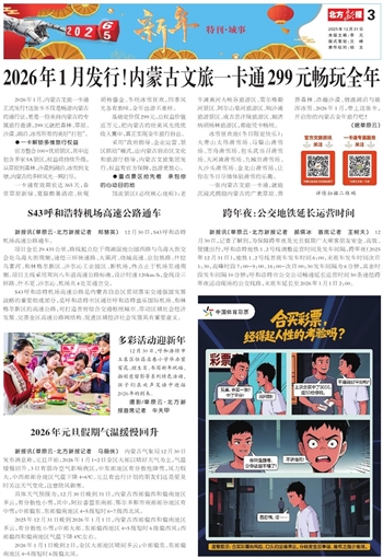 2025年12月31日晚到2026年1月1日,内蒙古西部偏西和偏南地区多云,有分散性小雪;中部大部、东部偏西地区4~5级短时6级偏西风;西部偏西和偏南地区气温下降4℃左右。