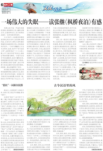 一场伟大的失眠——读张继《枫桥夜泊》有感