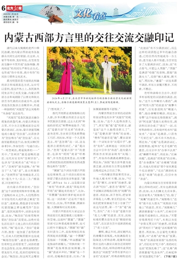 内蒙古西部方言里有很多带着山西味的词汇,其实也源自满语。比如,女人们嫌丈夫没本事,说自家男人“窝脓格几”的。除了“窝囊”的意思外,“窝脓格几”还有“推不在人前头”“死狗扶不到墙上”的意思。其实,“窝脓格几”满语原意是“小东西”,后来引申指做不成事的人。再比如,“不要穿得黑死烂干的”,本来以为是“穿得又黑又烂”的意思,结果满语“黑死烂干”就是“衣衫褴褛”的意思。再比如,方言里吃光剩余饭菜,叫“杀格”或“格杀”饭菜。“格杀”在满语里原指“鸟兽的残食”,后衍化为“吃干净”。有的村庄也说“把饭扎格了”,这“扎格”满语原意是“吃食东西”,后来延伸为“把饭菜吃干净”。(下转7版)