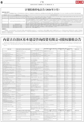 停电时间线路名称停电涉及的主要用户5日08:30-17:30赛马变969富康线#8杆96908D201开关后段锅炉22日08:30-18:30110kV察素齐变912陶思浩线91201断路器后段五里坡村、红房子村、小三柜村、郝家村、西柜村、金星村、平基村、参将村、羊房子村、多尔计村、大阳村、云社堡村、缸房村、南柜村、窑子湾村、西梁村、沙尔沁村、白只户村、妥妥岱村、忽拉格气村、祝乐庆村、黑蛇图村、小万家沟村24日08:30-09:30友谊变954宽巷子线3#环网柜954开关后段义乌分市场、温州步行街、国贸大厦、温商小区、温商小区、旧二附院、东方罗玛、步行街、假日酒店25日09:30-10:30天骄变9508西居线4#环网柜901开关后段李志义、煤改电香墅岭南平房区南公变、煤改电香墅岭南平房区北公变、呼和浩特市瑞环集团有限公司、攸攸板秋实公变、呼和浩特市回民区秋实学校、内蒙古京源港国际汽配城有限公司、内蒙古京源港国际汽配城有限公司、金源港、金源港东公变、供电局充电桩明珠丽景、攸攸板卫生院、攸攸板村委会后公变、供电局充电桩、呼和浩特市回民区环境卫生服务中心、中粮地产、供电局充电桩明珠丽景、攸攸板四十中公变、呼和浩特市市政建设服务中心、呼和浩特市市政建设服务中心、内蒙古德丰置业投资有限公司、呼和浩特市市政建设服务中心、攸攸板巴彦路东公变、呼和浩特市通津线缆有限公司、内蒙古锋行素质教育科技有限公司、呼和浩特市市政建设服务中心、中国石化销售股份有限公司内蒙古呼和浩特石油分公司、内蒙古蒙汾商贸有限公司、呼和浩特市回民区消防救援大队、安泰丰源环保科技(内蒙古)集团股份有限公司、呼和浩特青城特来电新能源科技有限公司、攸攸板卫生院东煤改电25日8:30-11:3035kV高泉营变鲁家营村、高泉营村、新州营村、碳车营、饭铺营、寿阳营、梁页营、北圪堆、平泉营、吴朋、大八犋、小八犋、麻花、白银厂汉、大崞县村25日8:30-10:3035kV高泉营变952官地线鲁家营村、高泉营村、新州营村、碳车营、饭铺营、寿阳营、梁页营、北圪堆、平泉营、吴朋、大八犋、小八犋、麻花、白银厂汉、大崞县村25日8:30-10:3035kV高泉营变951大岱线大水桥、三毛庵、周家明、泰国营、壕伴子、沙金、十二牛、新安全、巩家圪旦、大岱、独立坝、陕西营、依肯板、壮丁营史家圪旦25日8:30-10:3035kV高泉营变961迎红线北官地、大庞、丁字壕、小庞、刘堡圪旦、东西贾家营、大兴地、七股地、高家野厂、五甲桥25日8:30-10:3035kV高泉营变962公布线南北淖、大野厂、五里桥、喇嘛营、公布 温馨提示: