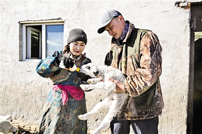 3月17日,在锡林郭勒盟东乌珠穆沁旗嘎达布其镇巴彦都兰嘎查,牧民敖特根朝鲁(右)与爱人哈斯其木格一起给小羊羔喂奶。春日时节,气温回升,锡林郭勒大草原上的牧民迎来了一年一度繁忙的接羔季。摄影/新华社记者 李志鹏