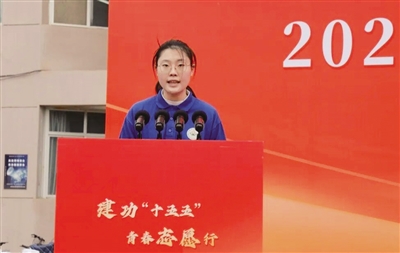 内蒙古农业大学红十字无偿献血志愿服务分队队长张懿宣读了《无偿献血倡议书》,号召广大学生以实际行动传递爱心,践行责任,在热血奉献中彰显青年担当。