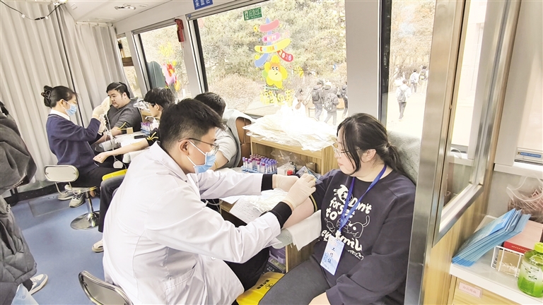 活动结束后,学子们走上爱心献血车,挽袖献热血。血液中心工作人员也为大家准备了牛奶、饼干、红糖水等自助餐,不断提醒同学们“吃饱喝足”,全力为献血学子们做好保障工作。