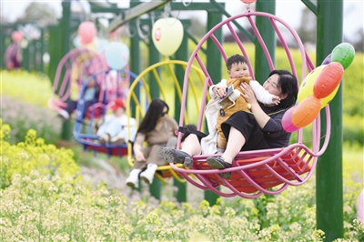 近日,陕西省汉中市百万亩油菜花进入盛花期,游客们在汉中市汉台区老君镇皇塘村皇塘水乡景区乘坐缆车观光。以金色油菜花海为媒,汉中市打造油菜花海旅游廊道,推出15条精品赏花线路,融入美食露营、非遗展演、艺术研学等多样化的体验项目,推动“花经济”从单一观光向多元融合转型升级,为当地农文旅深度融合发展注入新动能。摄影/新华社记者  邹竞一