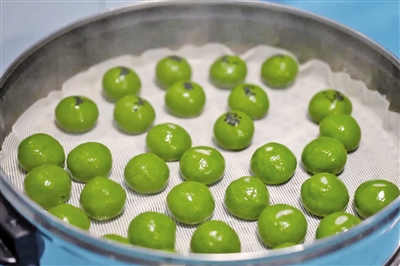 青团香甜绵软,是一款绿色健康的时令小吃,自古以来就深受食客们的青睐。宋朝《琐碎录》中有相关记载:“蜀人遇寒食日,采阳桐叶、细冬青染饭,色青而有光。”清代美食评论家袁枚在《随园食单》中这么描述青团:“捣青草为汁,和粉作粉团,色如碧玉。”且不说味道,单看那绿油油、胖乎乎的卖相,就够诱人口水的。