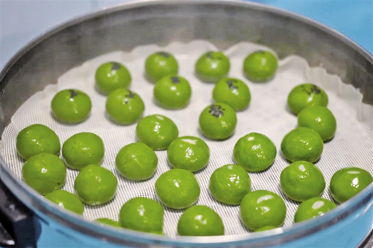 在南方,每逢清明时节,人们就将嫩艾叶切碎打成汁水,和在糯米粉中,包上馅料,放蒸笼里蒸熟,作为祭祖、春游的时令小吃。因艾草色青,故称“青团”,也叫“艾团”,或“清明果”。青团油绿如玉,香糯可口,细细品来,那一份淡淡的清香和糯韧绵软的滋味,让人瞬间感到春的气息在唇齿间弥散开来。