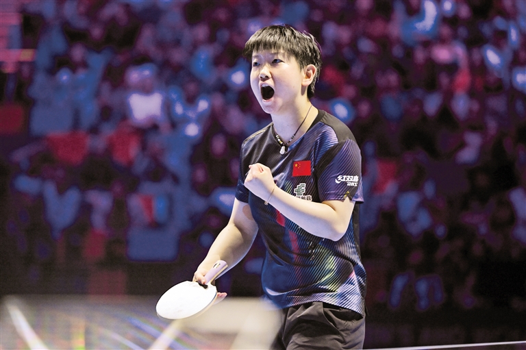 王楚钦在男单决赛中鏖战74分钟,以4:3险胜松岛辉空,首进世界杯决赛便登上最高领奖台,为中国男队夺回了上届失去的埃文斯杯。而在女单决赛中,孙颖莎和王曼昱用一场精彩对决再次证明了两人是当今女子乒坛“独一档”的存在。最终孙颖莎以4:1获胜,成就世界杯首个女单三连冠。