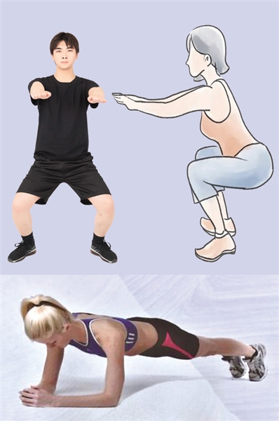 正确做法:双脚分开与肩同宽,上身保持挺直,膝盖弯曲,使身高降低10厘米左右,膝盖不超过脚尖。要注意,沉腰下蹲时,脚尖和膝盖都要向外张开,能减轻膝盖负担,避免运动损伤。