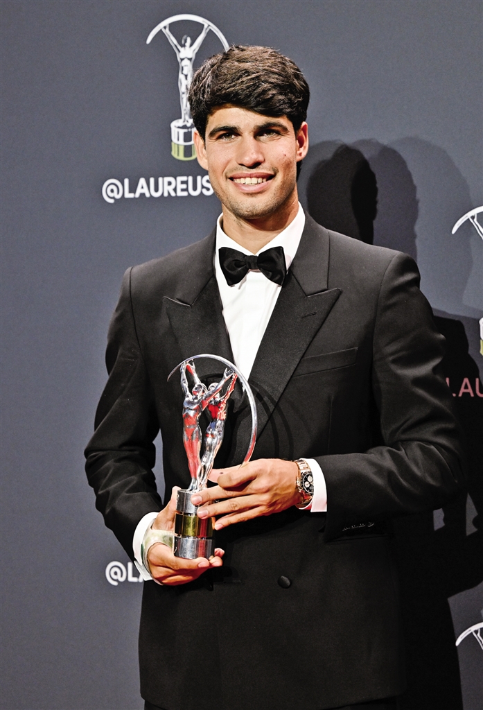 阿尔卡拉斯在2025赛季表现出色,全年夺得8项赛事冠军,其中包括法网和美网两项大满贯,并以年终世界排名第一的成绩结束赛季。凭借这一成绩,他击败同获提名的意大利网球选手辛纳、法国足球运动员登贝莱等体坛名将,成为继费德勒、纳达尔和焦科维奇后第四位获此殊荣的男子职业网球选手协会(ATP)选手。