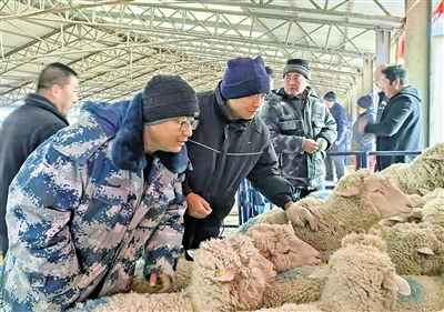 本报3月10日电 (记者 薛来)近日,巴彦淖尔市乌拉特前旗开展畜牧良种补贴集中发放活动,助力养殖户发展肉羊产业。当天一大早,额尔登布拉格苏木赛忽洞嘎查的十几户养殖户就来到青松草业巴美肉羊养殖基地,挑选心仪的巴美种公羊。养殖户吕昌喂养了140多只羊,这次赶上畜牧良种补贴的好机会,他又购买了3只种公羊,壮大自己的羊群。“巴美肉羊品质不错,每只种公羊政府补贴2500元,自己花500元,通过优质种公羊提升羊肉品质,羊肉价格会更高一些。”吕昌说。