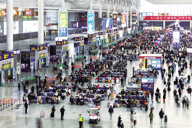 2月15日拍摄的上海虹桥火车站候车大厅。当日,2023年春运迎来最后一天。数据显示,今年春运全国铁路、公路、水路、民航累计发送旅客超过15亿人次。 新华社记者 王翔 摄