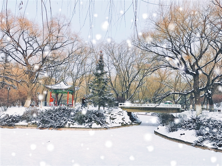 呼和浩特市满都海公园,瑞雪飘飘,柳丝如烟,唯美静谧。文/图 傅兵
