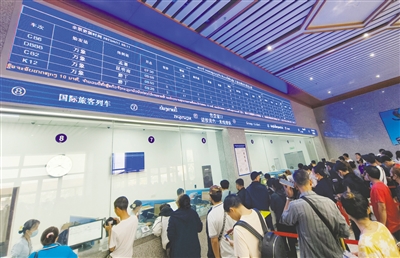 4月11日,旅客在老挝中老铁路万象站售票厅排队购票。中老铁路国际旅客列车车票当日开售。4月13日,中老铁路将从昆明南、万象站双向对开国际旅客列车,昆明至万象间可实现乘火车当日通达。新华社发