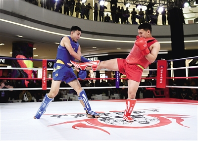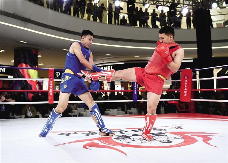 4月15日,参赛选手正在进行自由搏击比赛。当日,呼和浩特市体育局和呼和浩特市体育总会主办的2023年呼和浩特市自由搏击联赛正式开赛,本次自由搏击联赛历时4个月,共进行26场分站赛,每场比赛的冠军将最终进行总决赛的争夺。