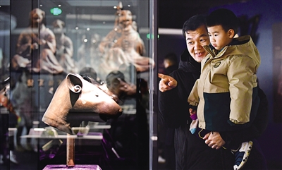 12月23日,观众在鄂尔多斯市博物院参观圆明园国宝兽首。当日,鄂尔多斯市博物院联合中国国家博物馆、保利艺术博物馆、北京市海淀区圆明园管理处重磅推出《盛世回归——圆明园国宝兽首暨清宫珍宝展》。展览以圆明园4尊国宝兽首真品为主要展品,同时还展出玉器、瓷器、家具、丝织品等70余件清代宫廷珍贵文物。本次展览预计免费开放58天。本报记者 王磊 李卓 摄