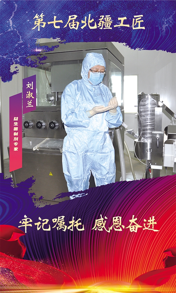 刘淑兰, 内蒙古双奇药业股份有限公司生产二部经理,高级工程师。荣获自治区劳动模范。2011年参与完成的“干法造粒工艺应用于微生态活菌片剂生产研究”获得呼和浩特市科技进步一等奖和自治区科技进步三等奖;2016年参与完成的“益生菌制剂工艺改进GMP产业化项目”获呼和浩特市科技进步二等奖;2020年1月至2022年12月参与内蒙古自治区科技厅重点扶持项目“高质量保加利亚乳杆菌菌粉发酵生产新技术研究及产业化应用”;2016年参与完成“金双歧产能扩大(200万片/批)”项目,单盒成本降低0.26元,每年节约成本约156万元。