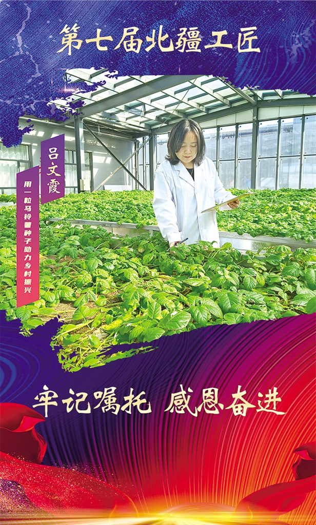 吕文霞,内蒙古中加农业生物科技有限公司研发技术总监,高级农艺师,高级工。荣获全国五一劳动奖章、内蒙古自治区五一劳动奖章、四子王旗草原巾帼等。选育的高淀粉新品种“中加10”“中加11”淀粉含量高达18%和20%以上,填补了国内淀粉加工专用薯的空白,为农民解决了土地因土传病害无法种植马铃薯的难题;把“传、帮、带、学”的作用发挥得淋漓尽致,在四子王旗各村委会授课50余次,培训对象达1000余人。