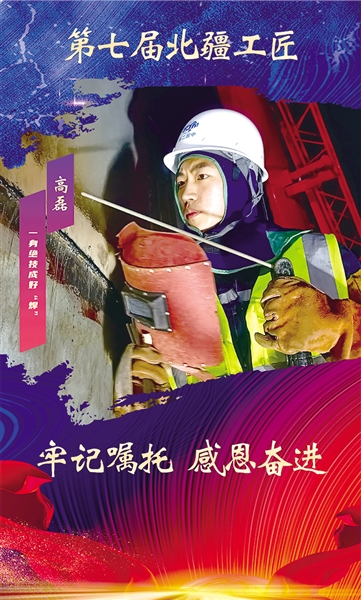 高磊,中国二冶集团有限公司钢结构工程技术分公司电焊工,高级工程师,高级技师。荣获全国向上向善好青年、全国青年岗位能手、自治区五一劳动奖章等。参加了2021年全国行业职业技能竞赛第十五届全国工程建设焊工技能大赛,荣获全国焊工个人单项金奖,是内蒙古自治区在该项赛事中唯一的金奖获得者;参加2020“一带一路”嘉克通用技术杯国际焊接大赛,获得个人二等奖;参与建设的兰州柴家峡黄河大桥工程,被中国工程建设焊接协会评为全国优秀焊接工程奖,中央电视台四套、九套连续播出项目建设过程。