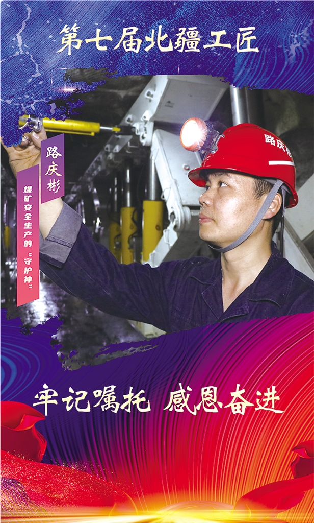 路庆彬,内蒙古昊盛煤业有限公司通防工区区长,工程师,技师。荣获首届鄂尔多斯工匠、鄂尔多斯市五一劳动奖章等。以他的名字命名的“路庆彬瓦斯测定器量程提高法”为维修人员提供技术指导,年创效170万元;带领工作室团队人员研制的“矿井防漏风装置”“转载点自动喷雾降尘控制装置”“喷浆机与除尘风机、净化水幕的联动装置”“远程瓦斯检测仪充电系统”“远程高压放炮喷雾装置”“井下组合式无叶轮风机”等10多项成果获国家专利,获实用新型专利7项,为矿井安全生产提供了技术保障。工作室成立以来,仅维修复用创造价值累计600余万元。