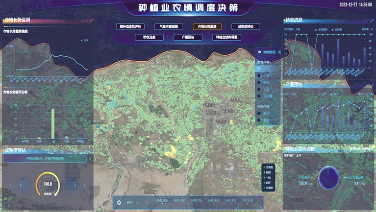 “种植业农情调度决策”,以卫星遥感、气象数据为基础,结合作物属性特征,对播种适宜性、灾害预警、作物长势、产量预估、结构调整等种植生产过程中的关键环节进行数据分析,为播种工作提供适宜性指导,对进一步提高调度数据的科学性和准确性,发挥农情调度在农业管理中的重要作用,为全市开展粮食生产工作决策指导提供信息依据。