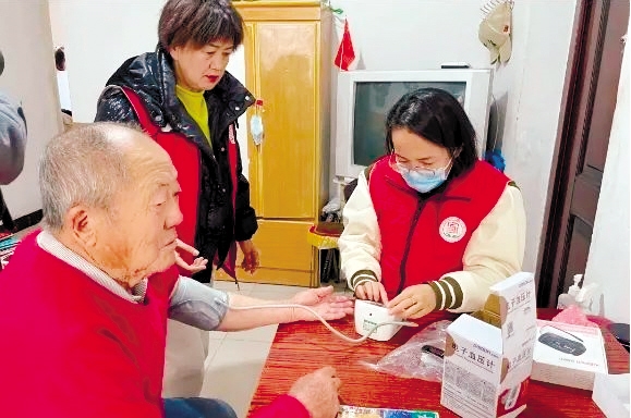 2023年12月28日一大早,阿拉善盟阿左旗王府街道腾格里社区的“家计划”志愿者们,来到社区居民侯桂凤老人家中,为她和老伴测量血压和血氧饱和度。