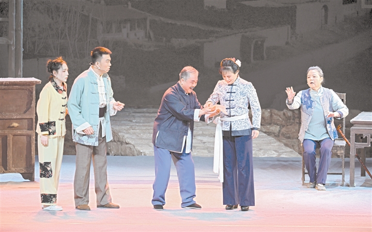 1月25日,二人台艺术研究剧院的演员们为观众表演经典剧目二人台现代戏《花落花开》。当日,呼和浩特市文化旅游投资集团二人台艺术研究剧院成立70周年庆典活动在呼和浩特市民族剧场举行,艺术家和观众欢聚一堂,共同见证这一历史性时刻。据了解,二人台艺术研究剧院成立以来行走的足迹遍布全国18个省、自治区、直辖市,创作排演二人台各类大小剧目数百部。本报记者  王磊  摄
