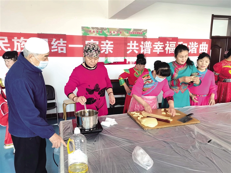 “我们的民族服饰展示、民族乐器演奏、民族技艺呈现等各类联谊活动深受各族群众欢迎,大家你中有我、我中有你地开展交往交流交融。”松山区兴安街道临潢家园社区组织开展“民族融合小课桌”等活动,各族居民用知行合一诠释着“民族团结一家亲”的理念。