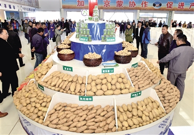 由农业农村部主办的“奋进新征程 强农促振兴”第二十届中国国际农产品交易会上,乌兰察布市100余家企业携百余种优质特色农畜产品在100余平方米的“原味乌兰察布”主题展区闪亮登场。马铃薯制品、牛排、羊肉、特制酸奶、卓资熏鸡、丰镇月饼……一个个独具乌兰察布地方特色的农特产品亮相中国农交会,并广受好评。