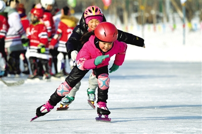 近日,呼和浩特市青城公园滑冰场,小朋友在追逐嬉戏。据现场教练介绍,寒假、春节期间,很多家长给孩子报名学习滑冰,感受冰雪运动的快乐。