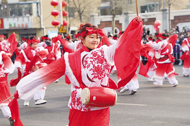 “咚咚咚!”伴随着清脆悦耳的敲锣打鼓声,在道路两侧数万群众期待的目光中,“瑞龙腾飞贺新春,喜庆元宵东河年”元宵节街头文艺展演活动正式开场。