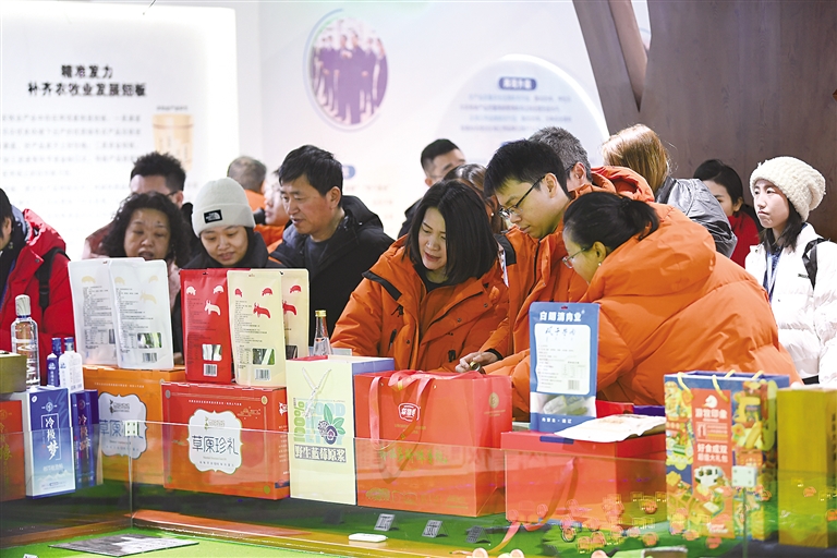 为加大内蒙古优质农畜产品宣传推介力度,宣传推广内蒙古农畜产品品牌,2月24日,自治区农牧厅在呼伦贝尔市物产中心举办了内蒙古优质农畜产品助力“十四冬”新闻媒体推介品鉴会和移动展厅巡展活动。参加“十四冬”报道的30余家各省区市新闻媒体记者和“十四冬”呼伦贝尔执委会工作人员、代表团负责人、当地企事业单位代表等欢聚元宵节,在紧张精彩的赛事之余品尝内蒙古美食、品鉴大草原优品。