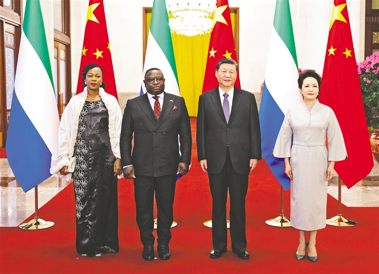 习近平指出,中非人民命运与共。中国始终把发展同非洲国家团结合作作为对外政策的重要基石。中方将秉持真实亲诚理念,加强同非洲国家相互支持和友好合作,将支持非洲工业化倡议、助力非洲农业现代化计划、中非人才培养合作计划同非盟《2063年议程》、非洲各国发展战略紧密对接,把中国的发展、非洲的发展、世界的发展进一步结合起来,推动中非合作提质升级,推动世界走向和平、安全、繁荣、进步的光明前景。中方愿同包括塞拉利昂在内的非洲朋友一道,办好今年的中非合作论坛会议,将中塞、中非友好发扬光大。